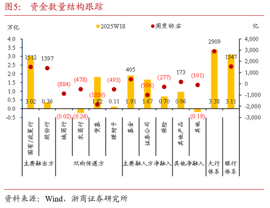 (1)统计期增持力量中,货基>其他产品>理财>保险>基金>大行>其他非银机构>外资行,减持力量中城商行>农商行>股份行>券商;