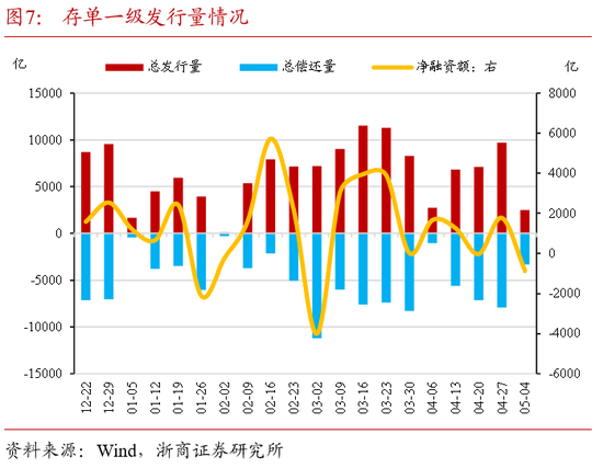 (2)未来一周,存单到期规模上升至5000亿,供给端压力边际上升,资金均衡运行状态下,存单收益率预计震荡。