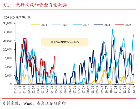 1、央行投放跟踪:统计期内,7天期逆回购资金到期5737亿,央行投放7天期资金11503亿,全周资金累计净投放5766亿,7天OMO存量上升至16178亿。
